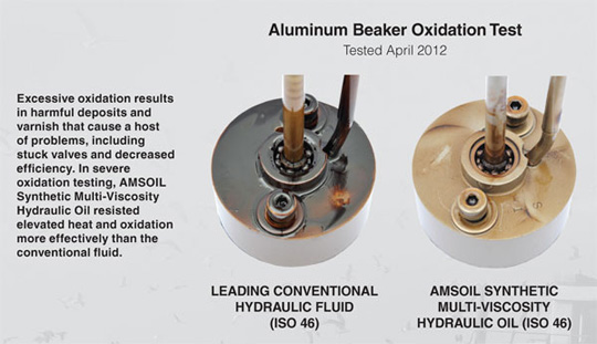Increased heat can cause varnish to form on metal surfaces, including valves, pumps and bearings. Its soft, sticky composition ultimately hardens into a harmful veneer that can reduce fluid flow, plug filters, stick valves and increase friction. Synthetic Multi-Viscosity Hydraulic Oil is fortified with
